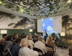 La scrittrice Licia Cardillo Di Prima apre il suo intervento prendendo confidenza con il pubblico, presentandosi a partire dalle sue radici. Racconta di essere nata e di vivere a Sambuca di Sicilia, un paese che nel 2016 ha ricevuto il prestigioso riconoscimento di Borgo più bello d’Italia, acquisendo da allora una rinnovata notorietà. Per lei Sambuca non è solo un luogo geografico, ma uno spazio dell’anima: un territorio affascinante, dal paesaggio articolato e suggestivo, segnato dalla presenza di un lago sulle cui rive sorge la cantina di famiglia, circondato da boschi e montagne dalle forme quasi zoomorfe, capaci di accendere l’immaginazione.