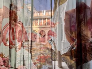 La profumeria CampoMarzio70 per l’occasione ha ideato delle apposite colonne dove sperimentare l’essenza dei profumi: fiori d’arancio, gelsomino, rosa e tuberosa. Il percorso olfattivo si conclude in una sala finale, dove le note floreali, armonizzate in un’unica fragranza dal maestro profumiere Luca Maffei, avvolgono tutto lo spazio espositivo.