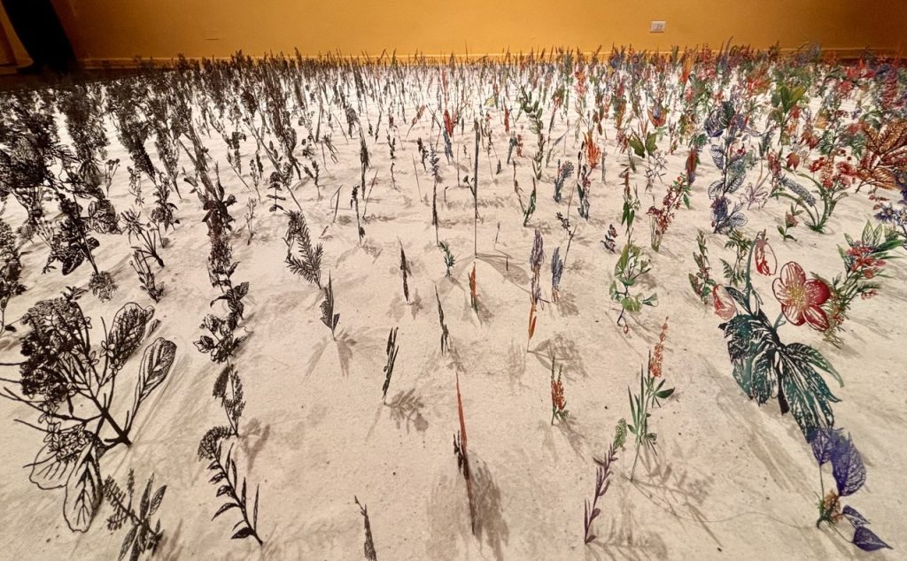 L’installazione “Blackfield”, creata dall’artista Zadok Ben-David, è un’esperienza immersiva poetica. Un’intera sala ospita un campo di fiori, minuziosamente realizzati in acciaio inciso. Ognuno di essi è stato ripreso da illustrazioni botaniche storiche per riflettere sulla fragilità e la resilienza della natura.