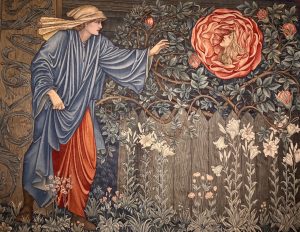 In questa atmosfera sospesa, il dipinto preraffaellita “The Pilgrim in the Garden or Heart of the Rose” (1901) di Edward Burne-Jones,realizzato in collaborazione con William Morris, si offre come metafora di una ricerca interiore.